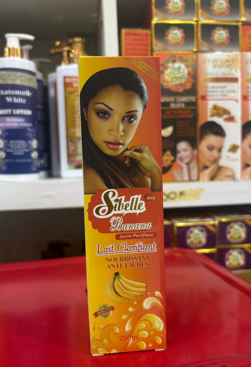 Le Sibelle Banana Lait Clarifiant 250 ml est un lait corporel enrichi en extrait de banane et agents éclaircissants, conçu pour hydrater, nourrir et éclaircir la peau.