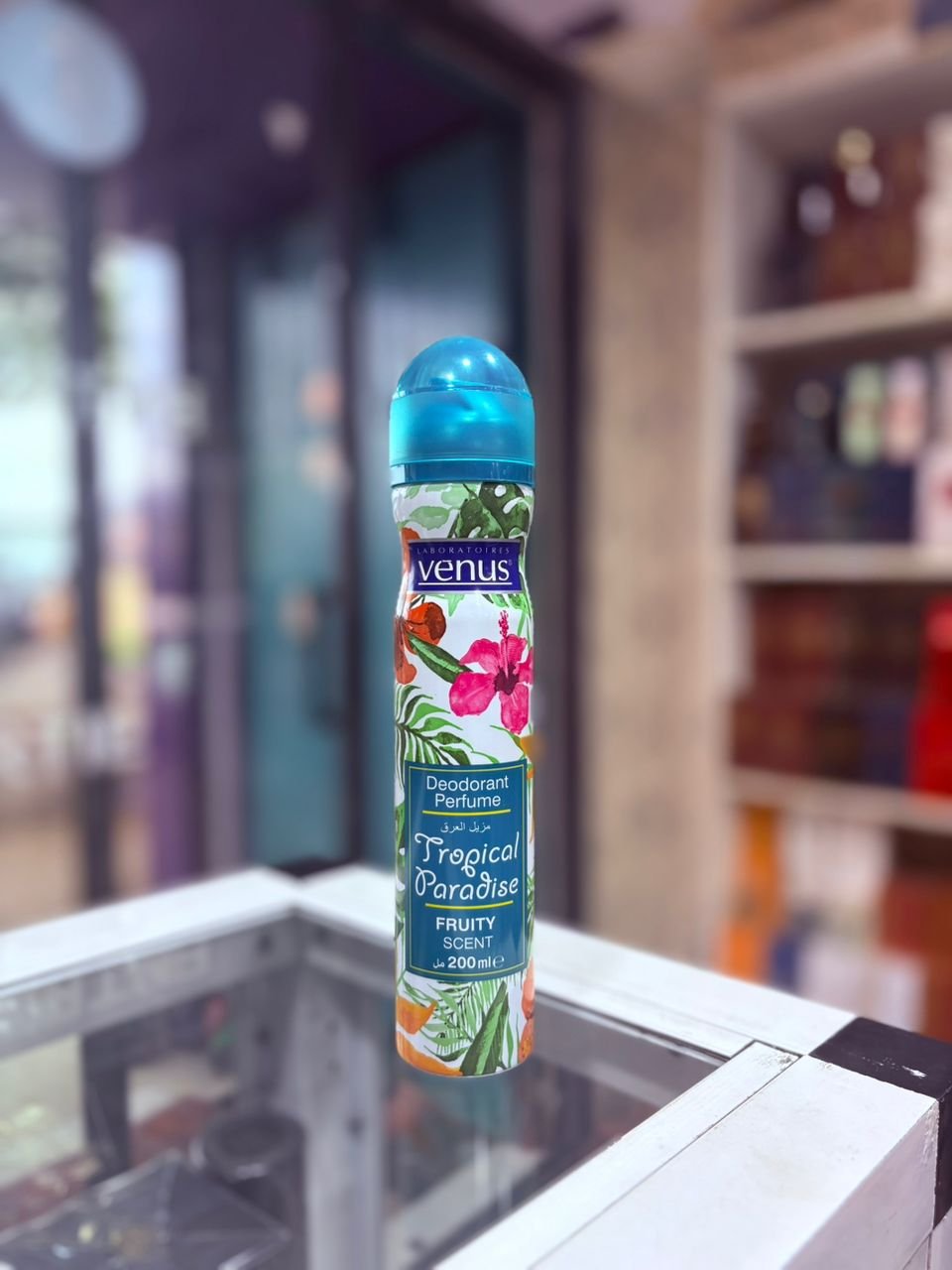 Restez frais, parfumé(e) et énergique toute la journée avec Venus Tropical Paradise Fruity Déodorant, pour une sensation fruitée et exotique à chaque instant.