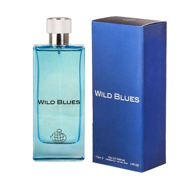 Wild Blues de Fragrance World – Eau de Parfum 100 ml : parfum masculin frais-boisé avec bergamote, menthol, cappuccino, ambre. Une fragrance audacieuse et longue tenue.
